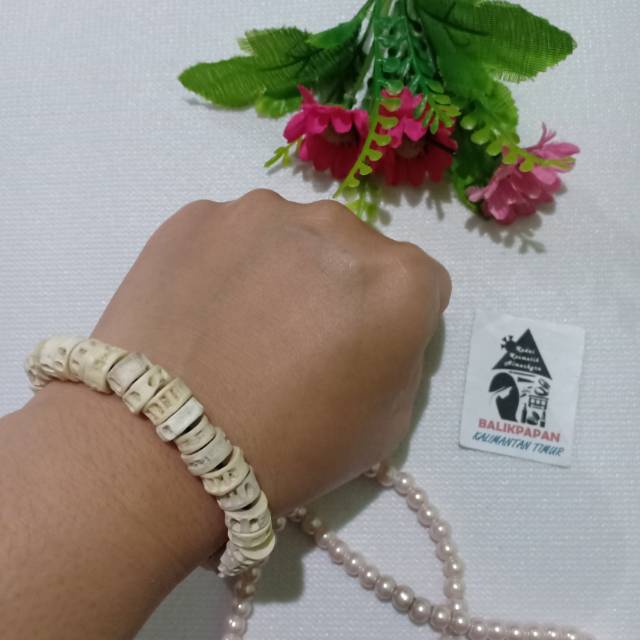 Gelang tulang ikan hiu asli. Stok saat ini tersedia di gambar pertama (utama), tali karet.